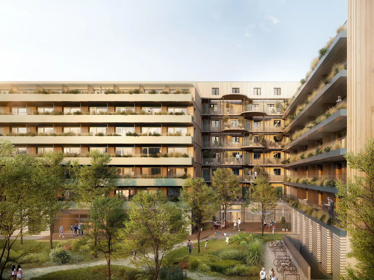 Gemeinschaftsterrasse und -dachgarten, Spielplatz, Gemeinschaftsraum, Waschküche, großer mehrgeschoßiger Mehrzweckraum
