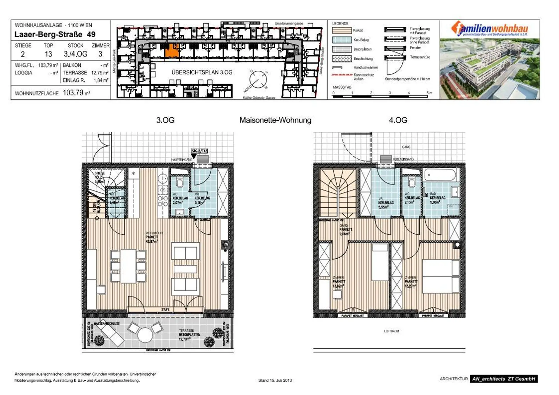 Zur WIEDERVERMIETUNG gelangt eine 103,79 m² große 3 - ZIMMER MAISONETTE-WOHNUNG mit Terrasse im 3. und 4. OG eines Neubaus errichtet im Baujahr 2014.