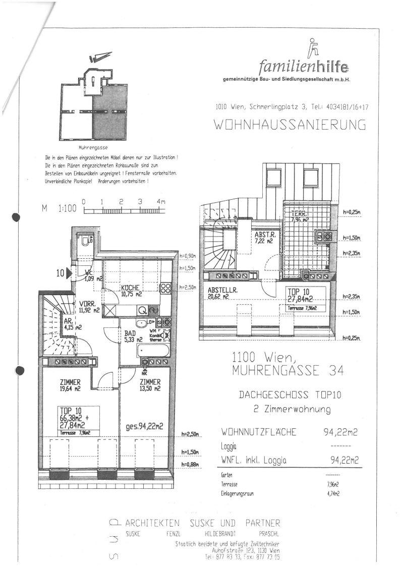 Wohnung mit Küche, 2 Zimmer, Vorraum, Bad, WC. Oben 2 Raum, Terrasse insgesamt: 94,22 m2 + Terrasse 7,96 m2
