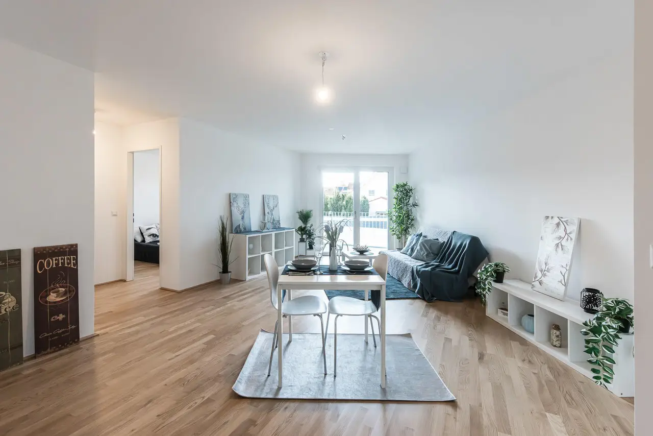 Es stehen wohnlich ausgestattete schlüsselfertige 2 bis 4 Zimmer-Wohnungen mit wohnlichen und praktischen Grundrissen in Größen von 51 m² bis 115 m² mit attraktiven Freiflächen wie Loggia, Balkon, Terrasse oder Eigengarten im Erdgeschoß zur Verfügung. Die jeweiligen Wohnetagen sind selbstverständlich barrierefrei mit dem Lift zu erreichen – ein Kinderwagen- und Fahrradabstellraum stehen ebenso zur Verfügung wie ein Kleinkinderspielplatz.