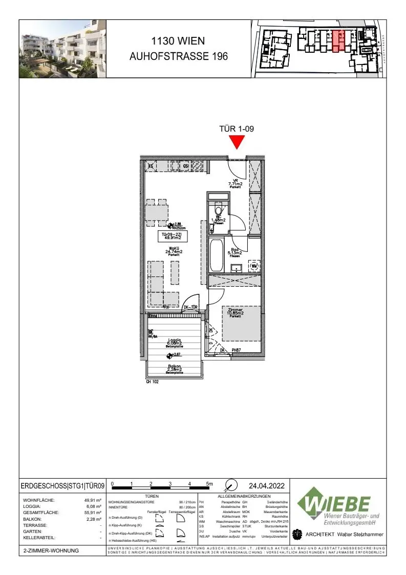 Stellplätze in der hauseigenen Tiefgarage können um € 120,-- dazu gemietet werden